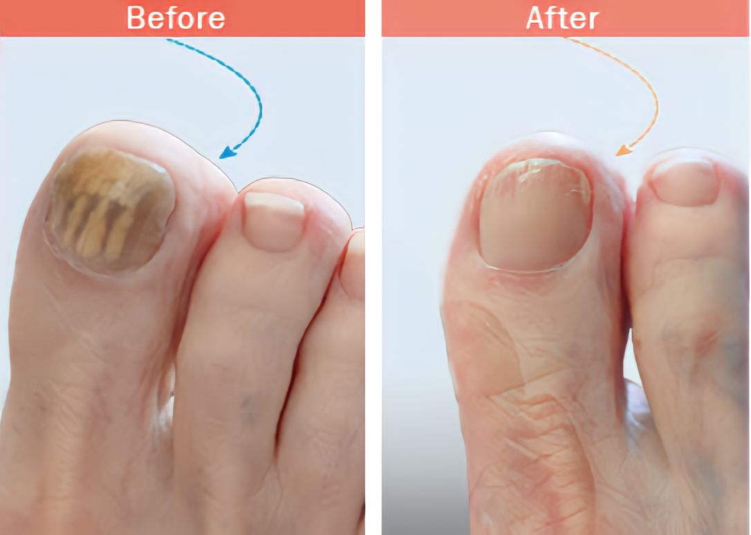 Onychomycosis is a fungal nail infection that causes the nail to become thick, yellow and brittle. This infection can be persistent, leading to discomfort and self-consciousness.